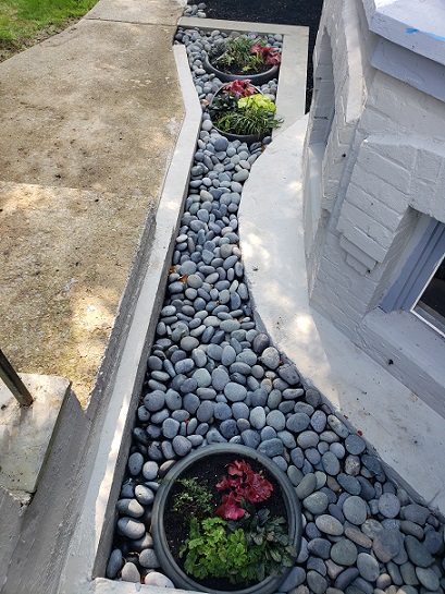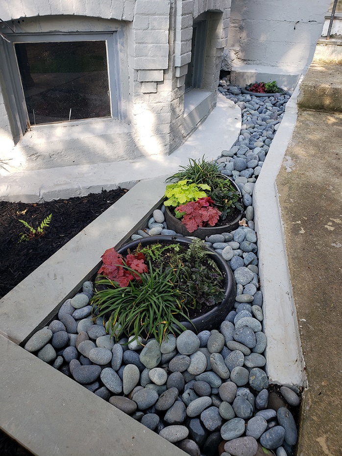 This was a project of sweat equity and passion. While it was really hard physical work, the combination of labor and creativity was a great stress relief from the pressures and unknowns on COVID. I thoroughly enjoyed this project, found it meditative, and it helped me find solutions for the upcoming Holiday season I direct at John Mini. So far, thankfully, this drain works well, and our basement is bone dry. Now that it is Spring, I am excited to get this shade garden going again. I am hoping it has a little more appeal than just a drain. #Born to Enchant