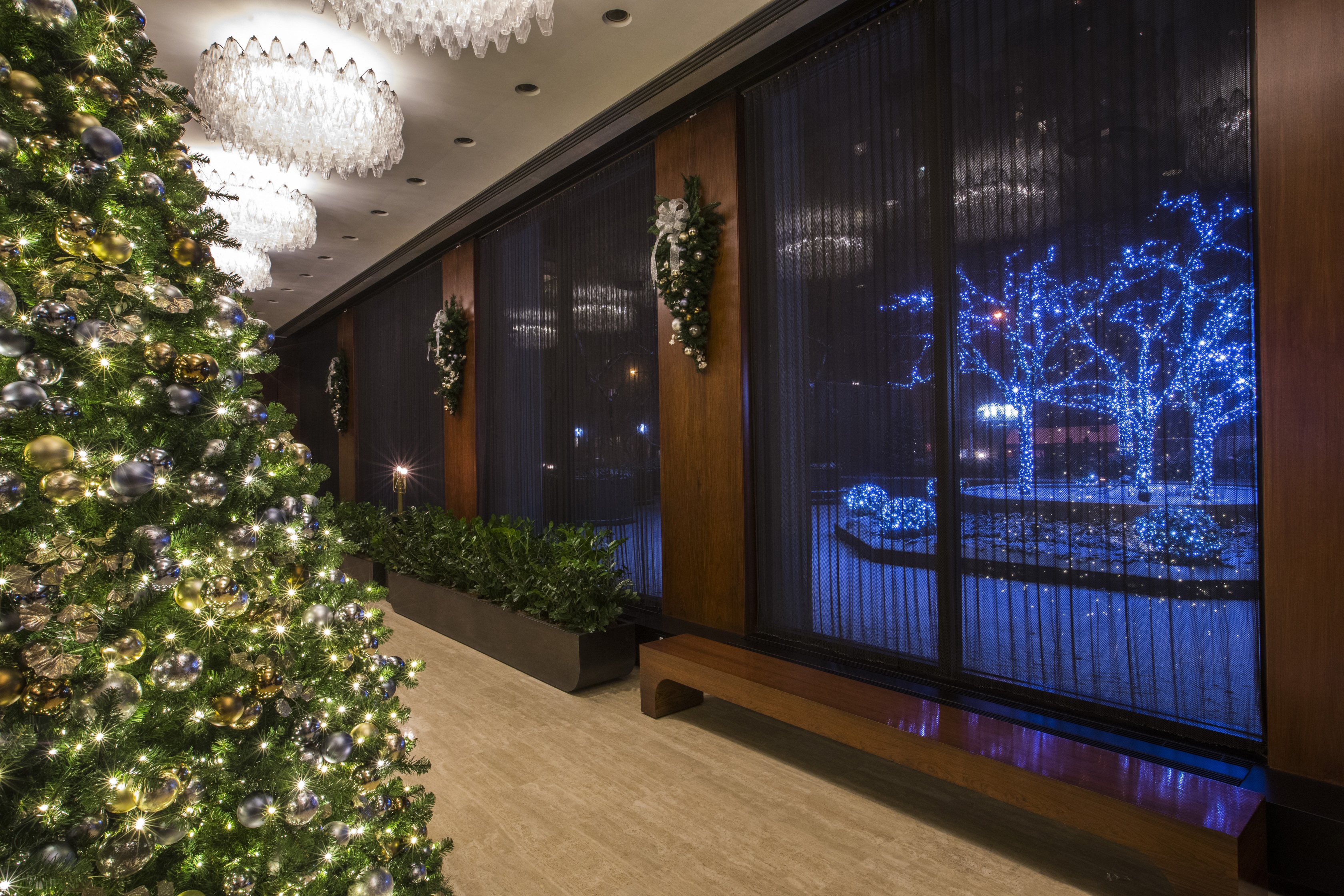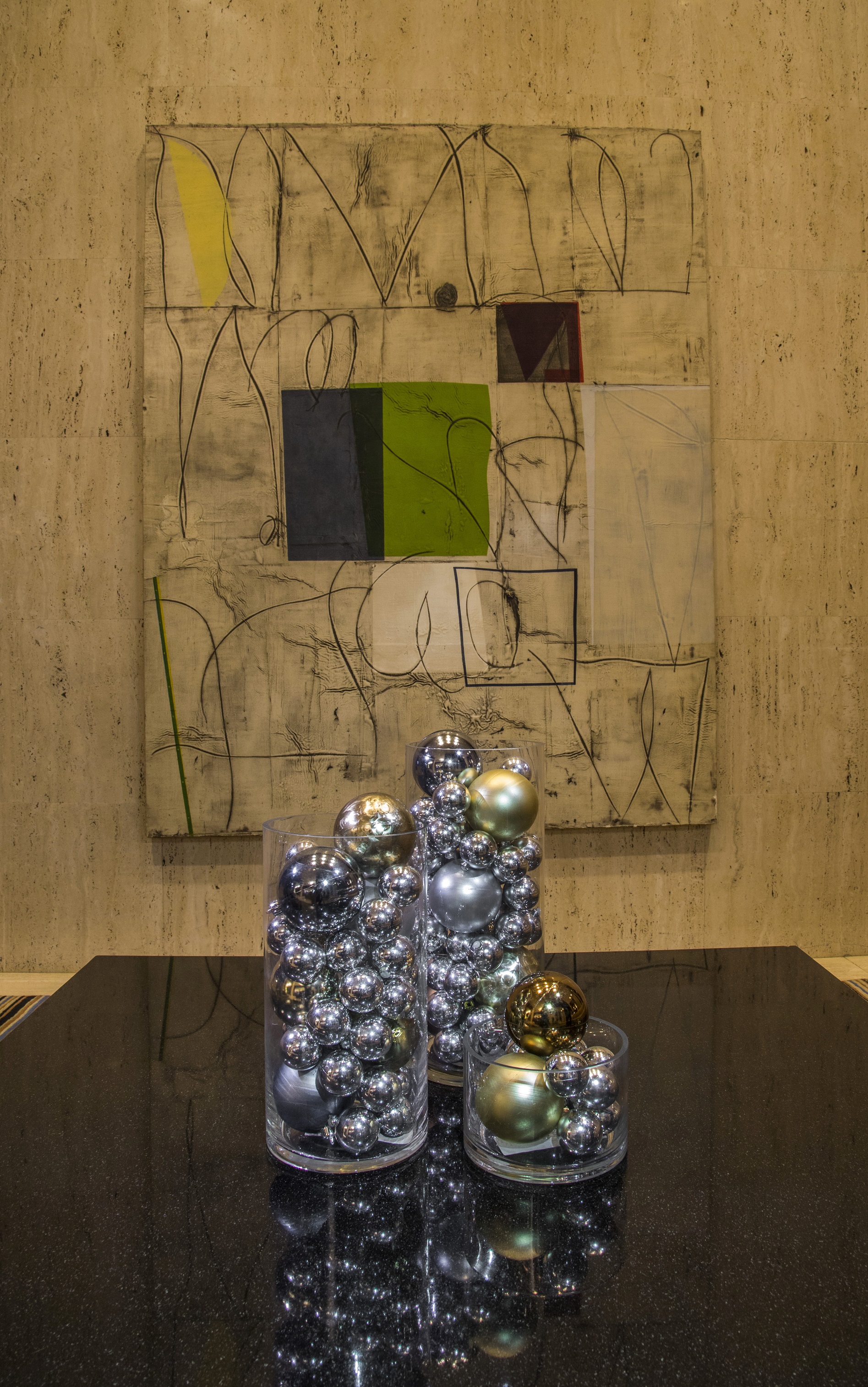 The reflection of décor becomes its own dazzling design component that dances with motion as residents pass through the lobby.