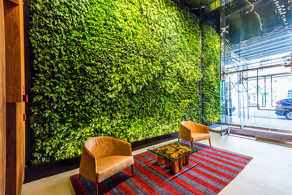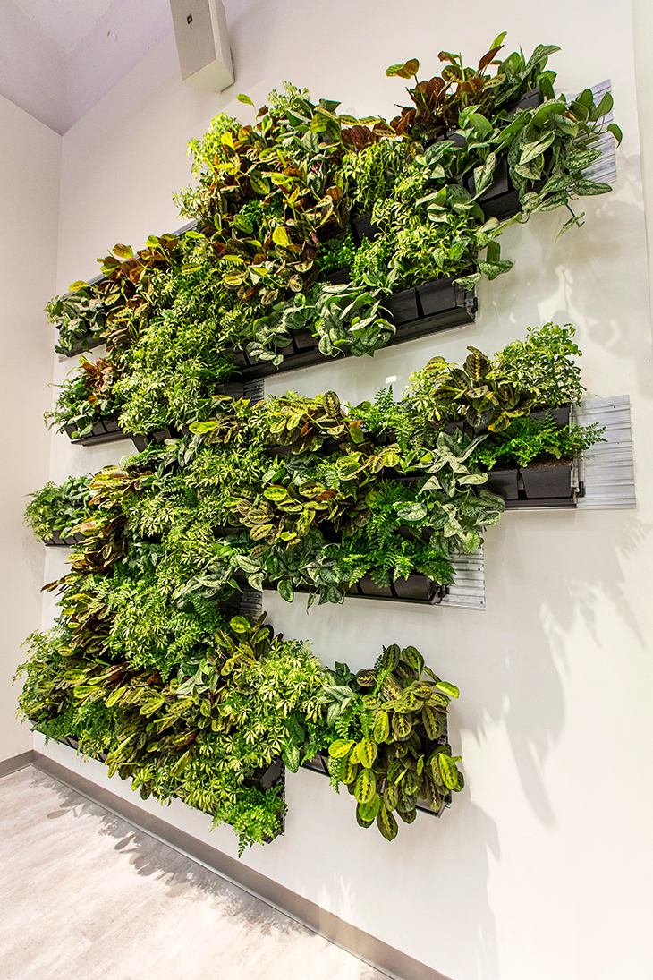 Our expertise was utilized to select the right plants and find creative ways to maintain the wall in this tight space.