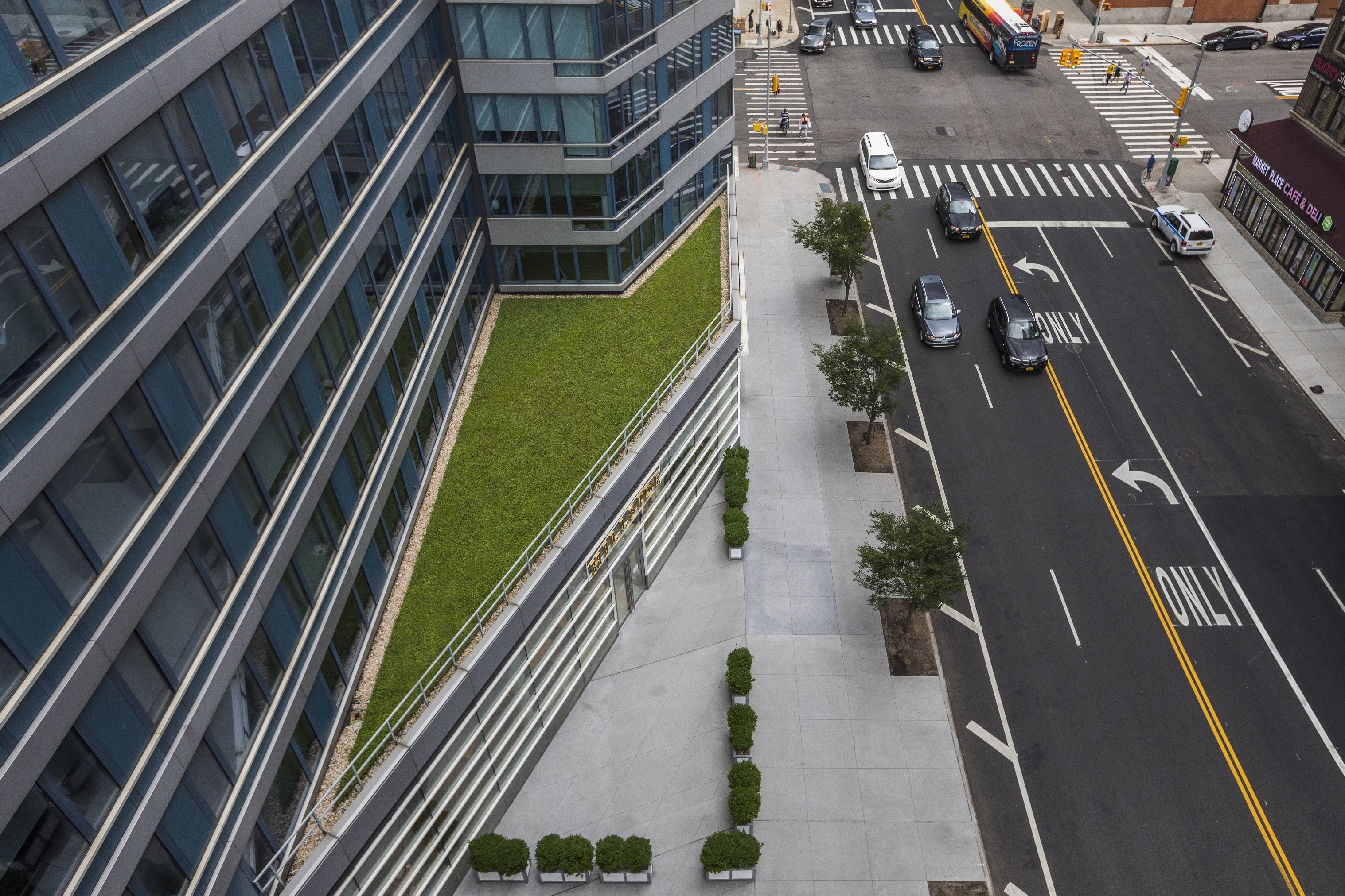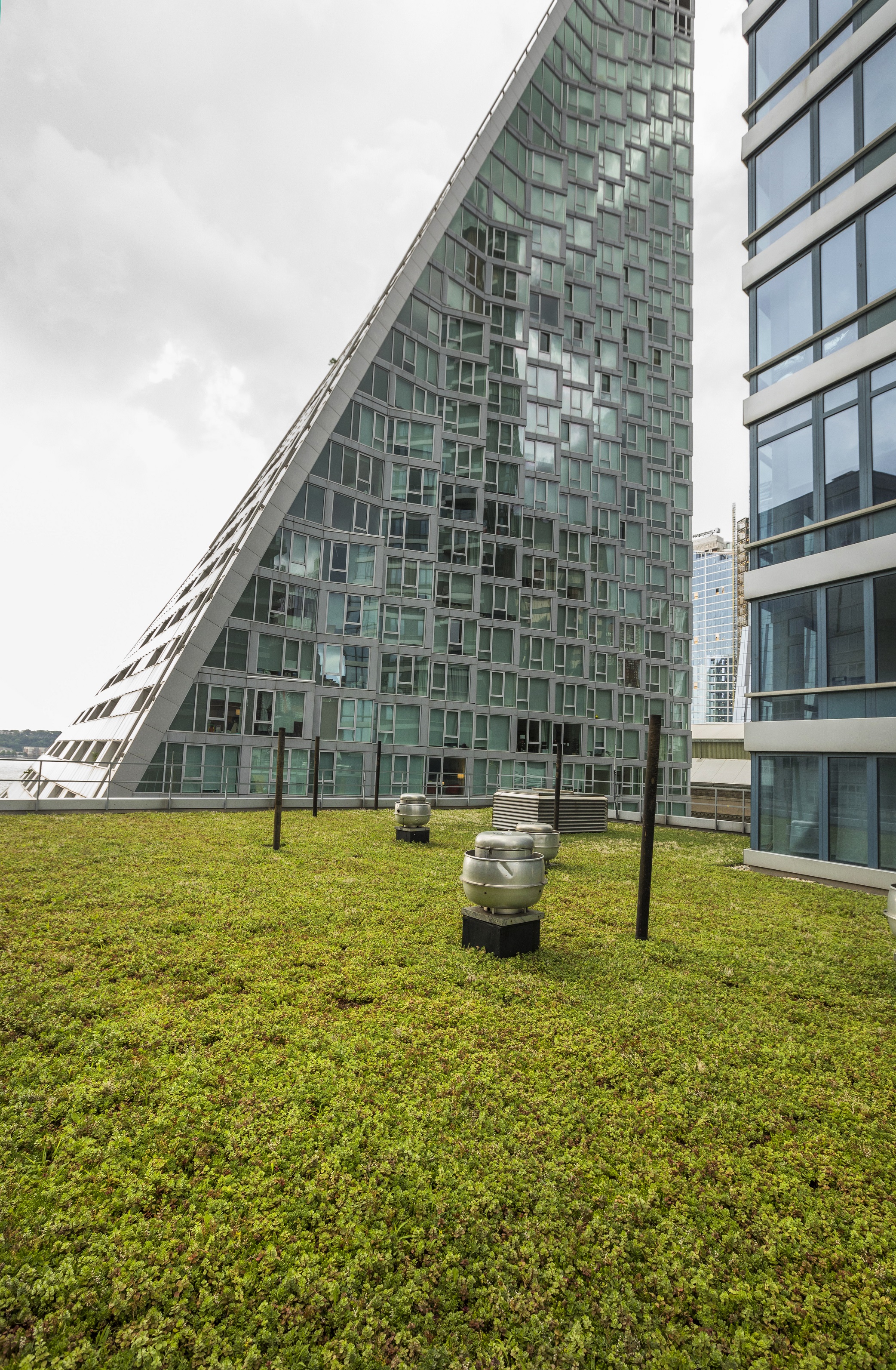 The minimalist green roof proves that a clean design can make a dramatic statement. The impact is in its' simplicity.