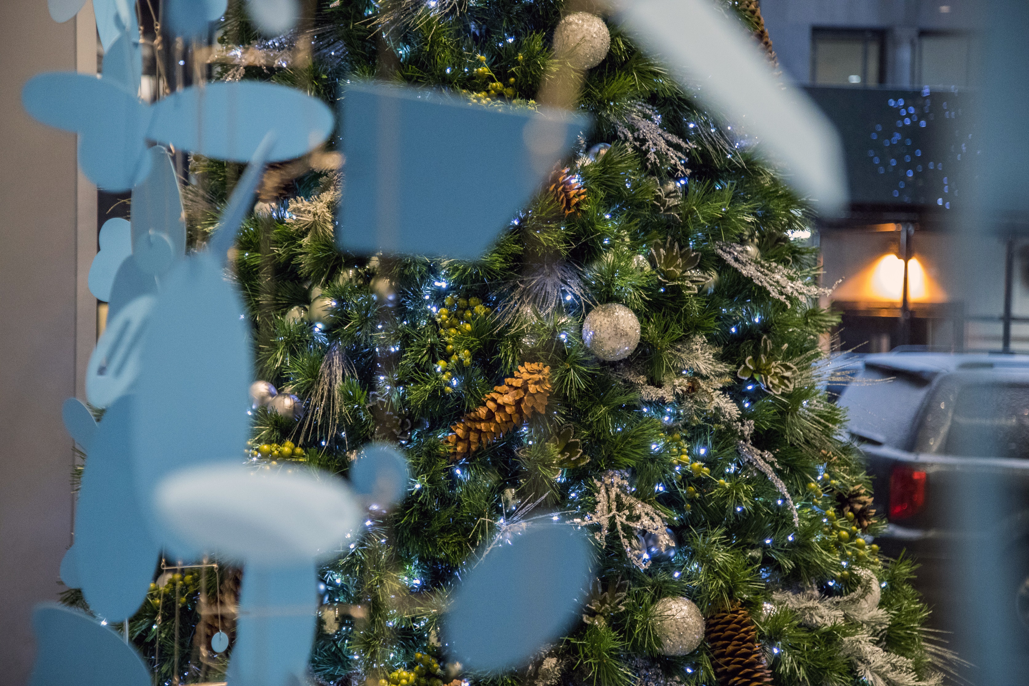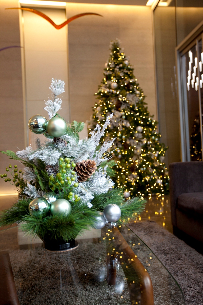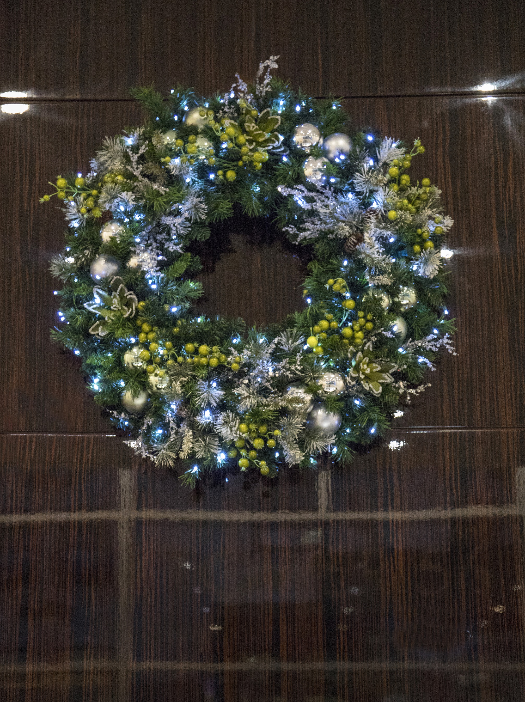 This striking design achieves impact with cool blue lighting, complimenting the modern art in the lobby.