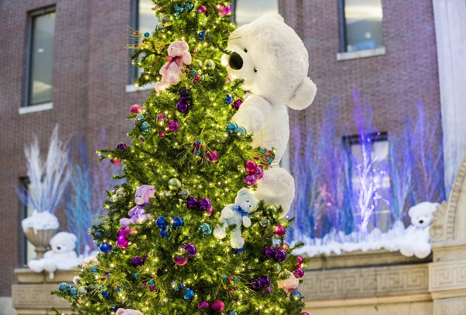 As residents enter the building they are met with holiday décor complemented with natural elements of the winter season. Making their way through the common areas of this modern residential building in Manhattan, they find more playful décor riddled with the excitement and activities of the holidays.
