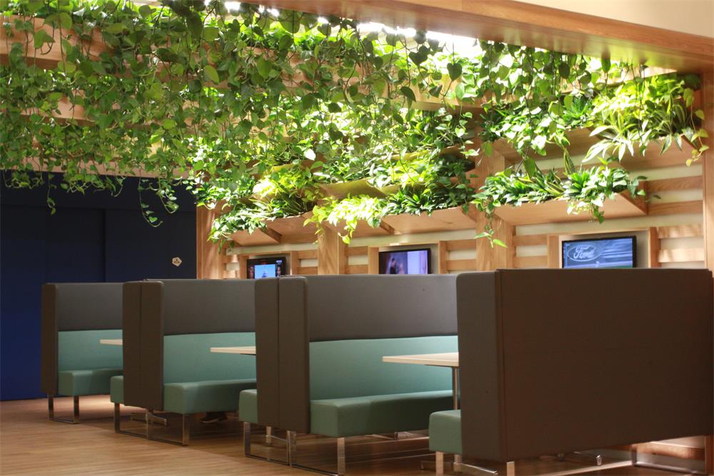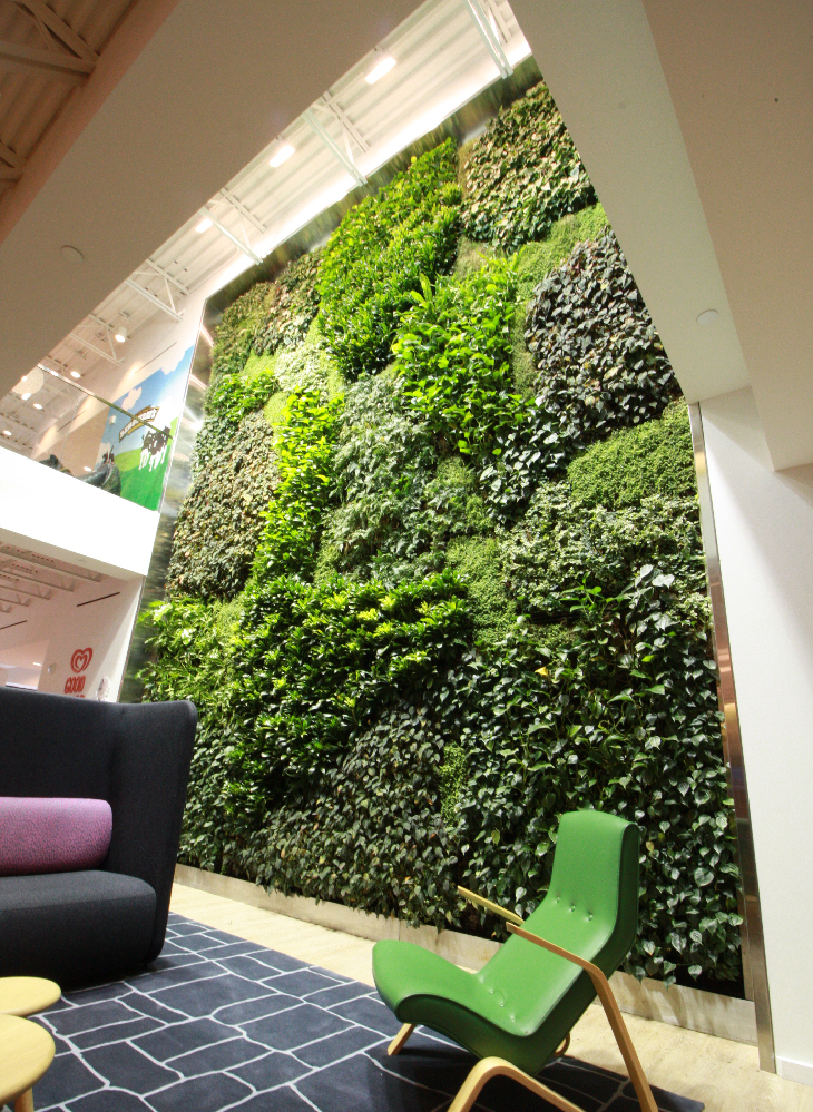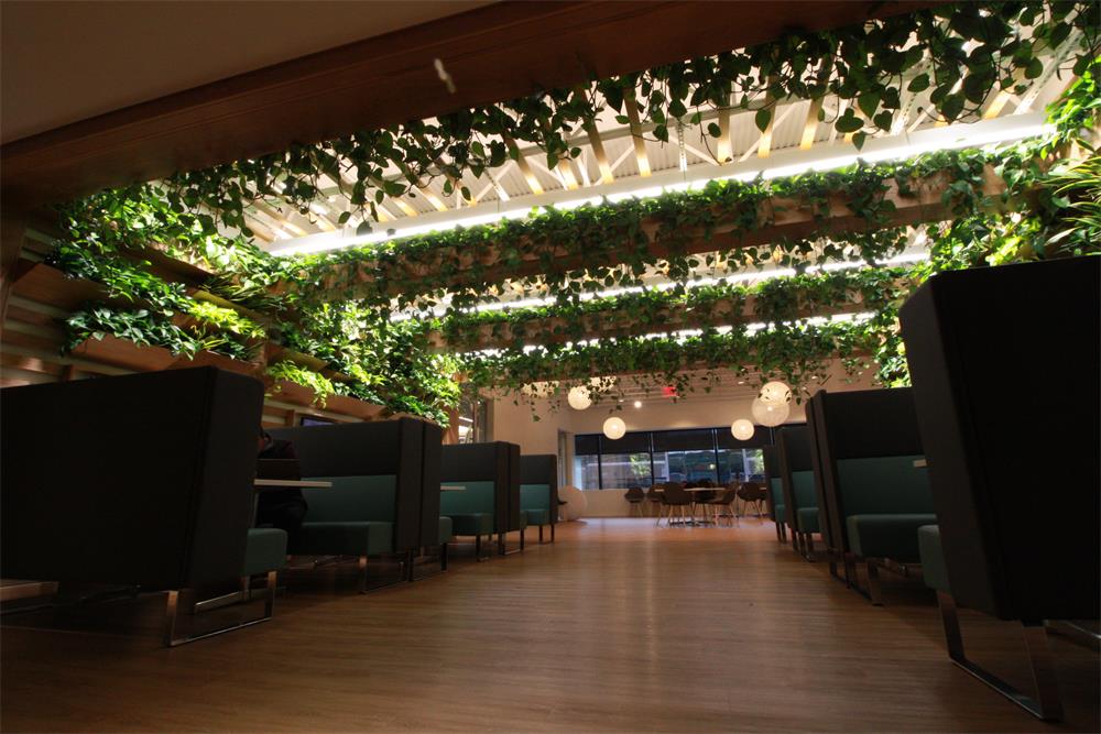 A 125 year old company that has pioneered the development of sustainable food and beauty products creates a green oasis for employees and visitors to its New England Office. Their dedication to delivering an outdoor inspired experience indoors pushed them to not only design a two story green wall within their office, but also layer the offices other areas with beautiful plants installed on a wooden trellis, requiring expert horticultural care.