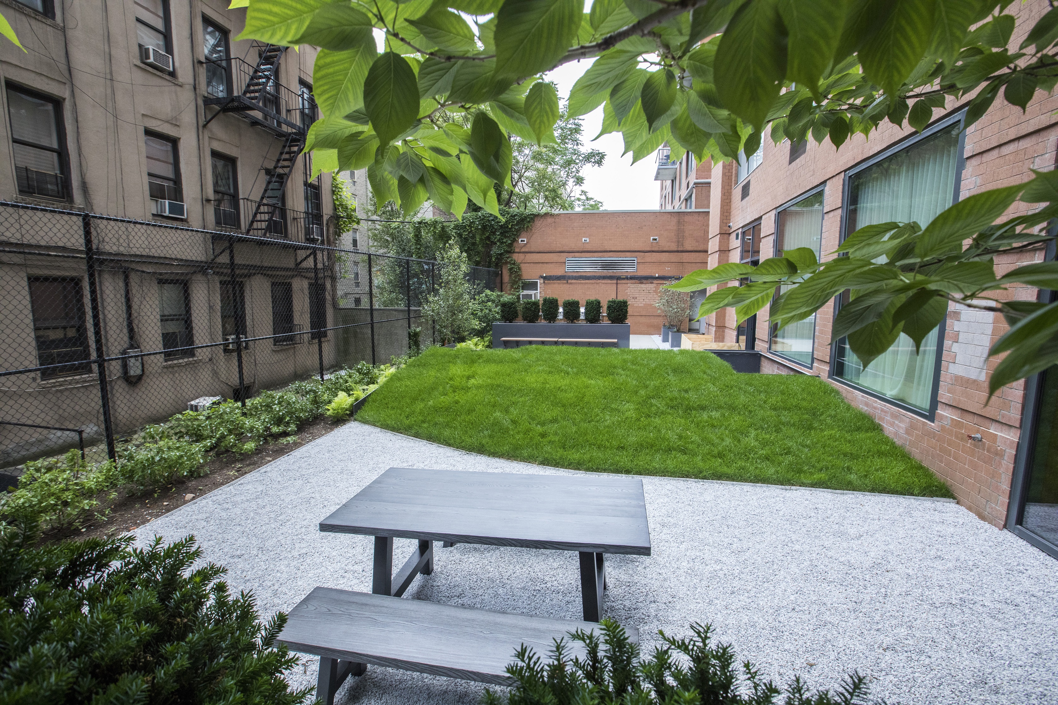 A quite break with a side of fresh air is delivered through this refined courtyard, while guests are welcomed with a sense of calm through the sleek simplicity of a minimalist planting scheme.