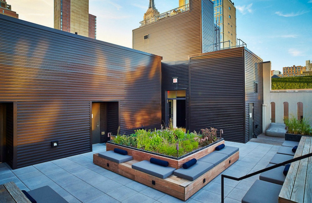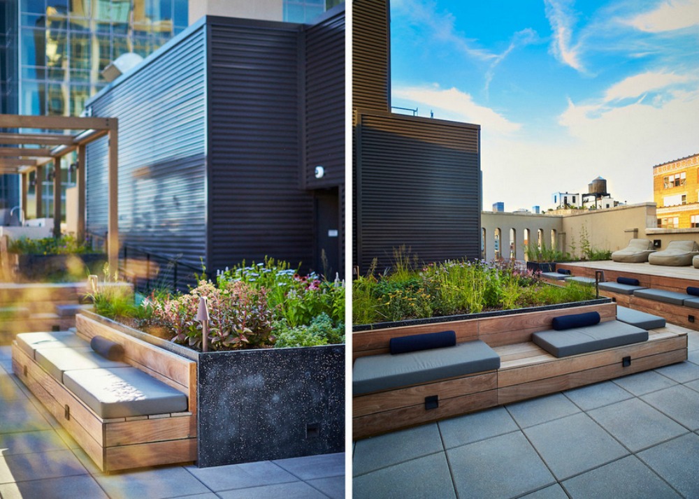 A colorful perennial palette meets with clean lines to compliment this luxrious rooftop space
