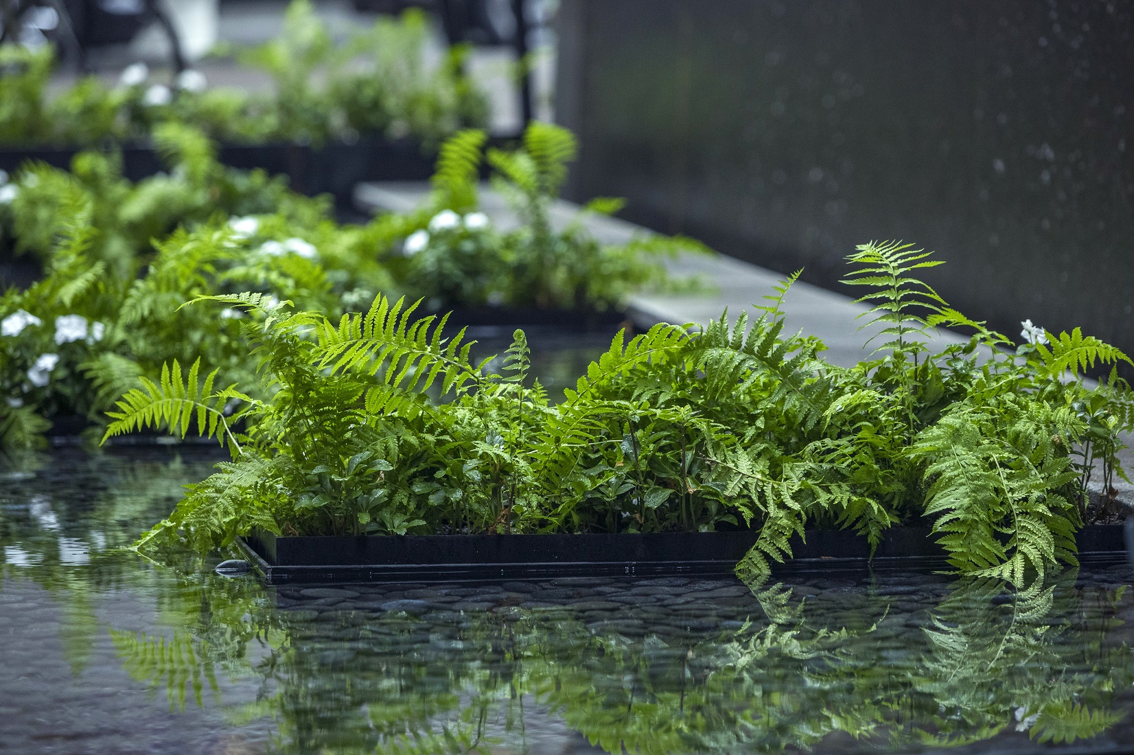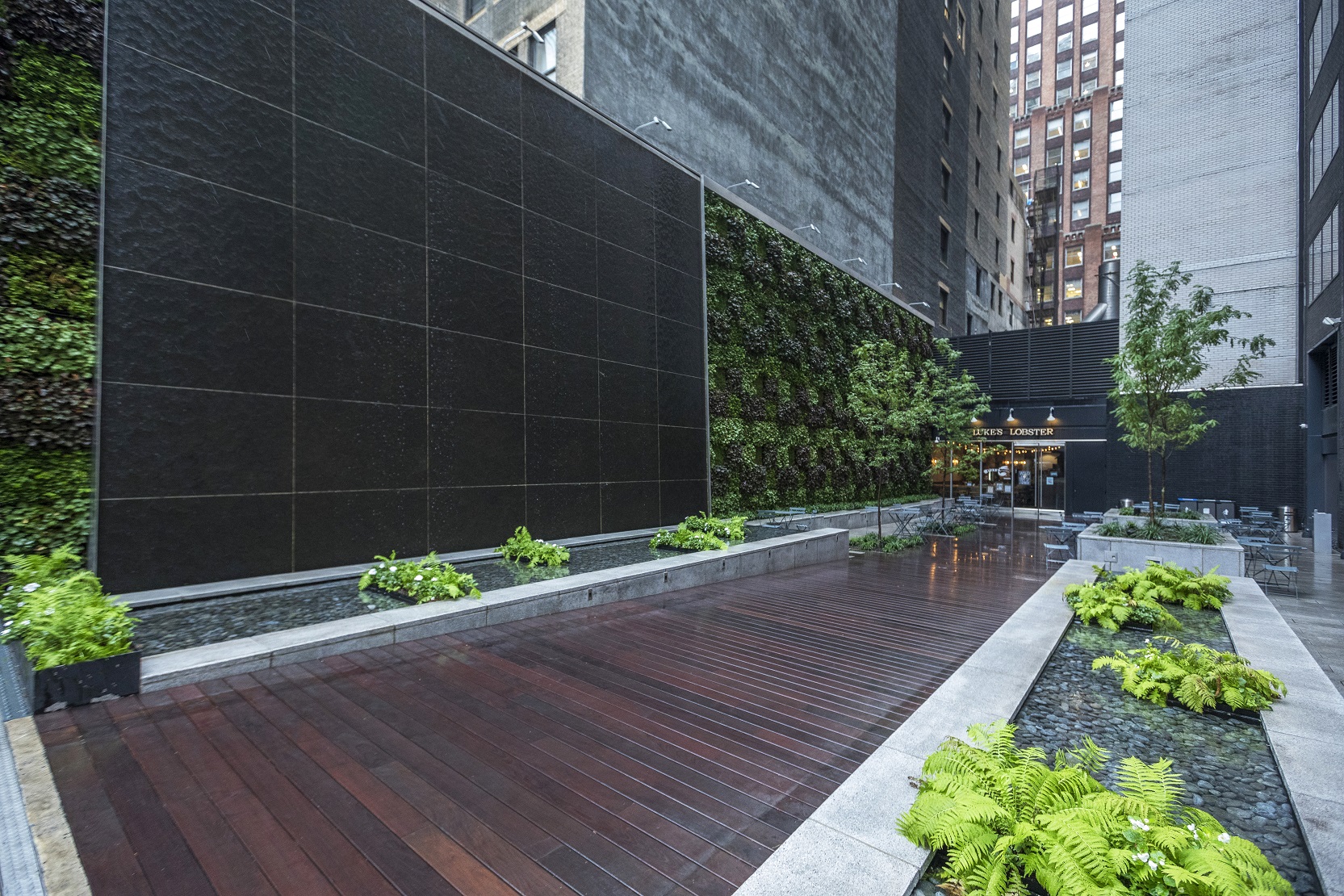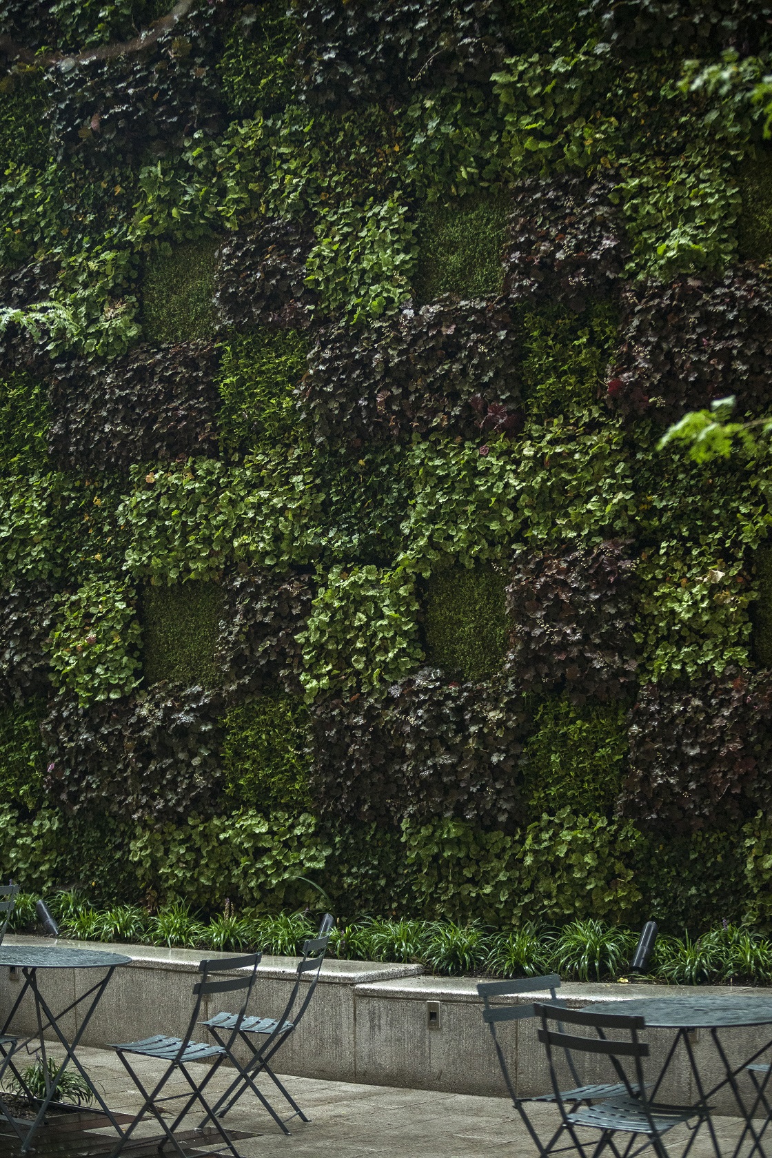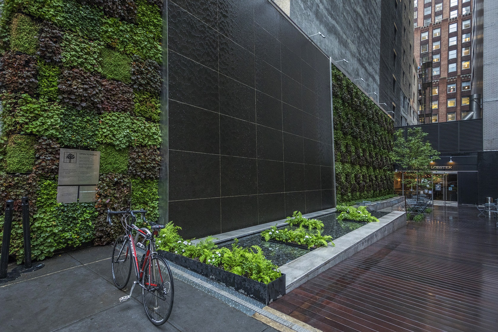 This impactful living wall measures over 60 feet wide and 25 feet tall, creating a picturesque backdrop for meeting with friends and colleagues in this Manhattan pocket park