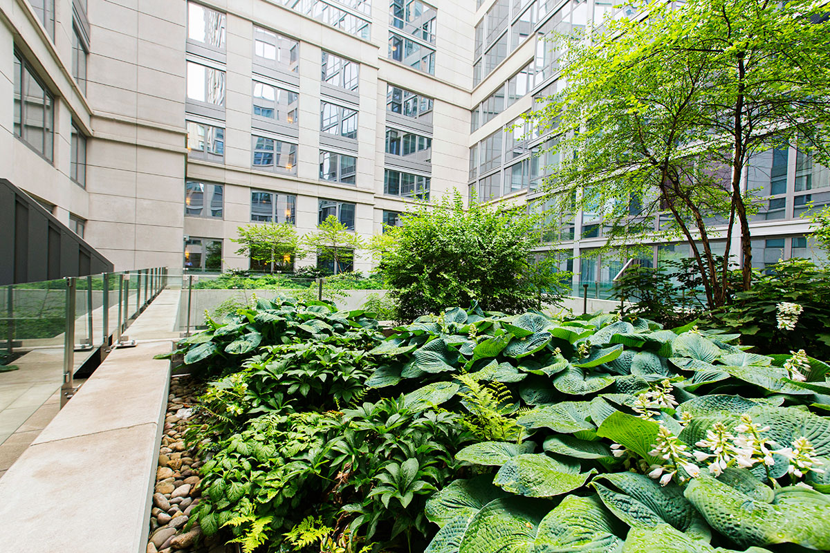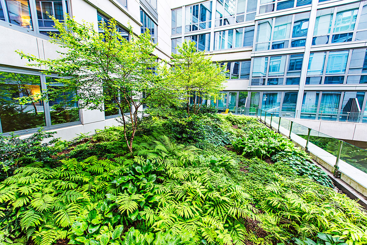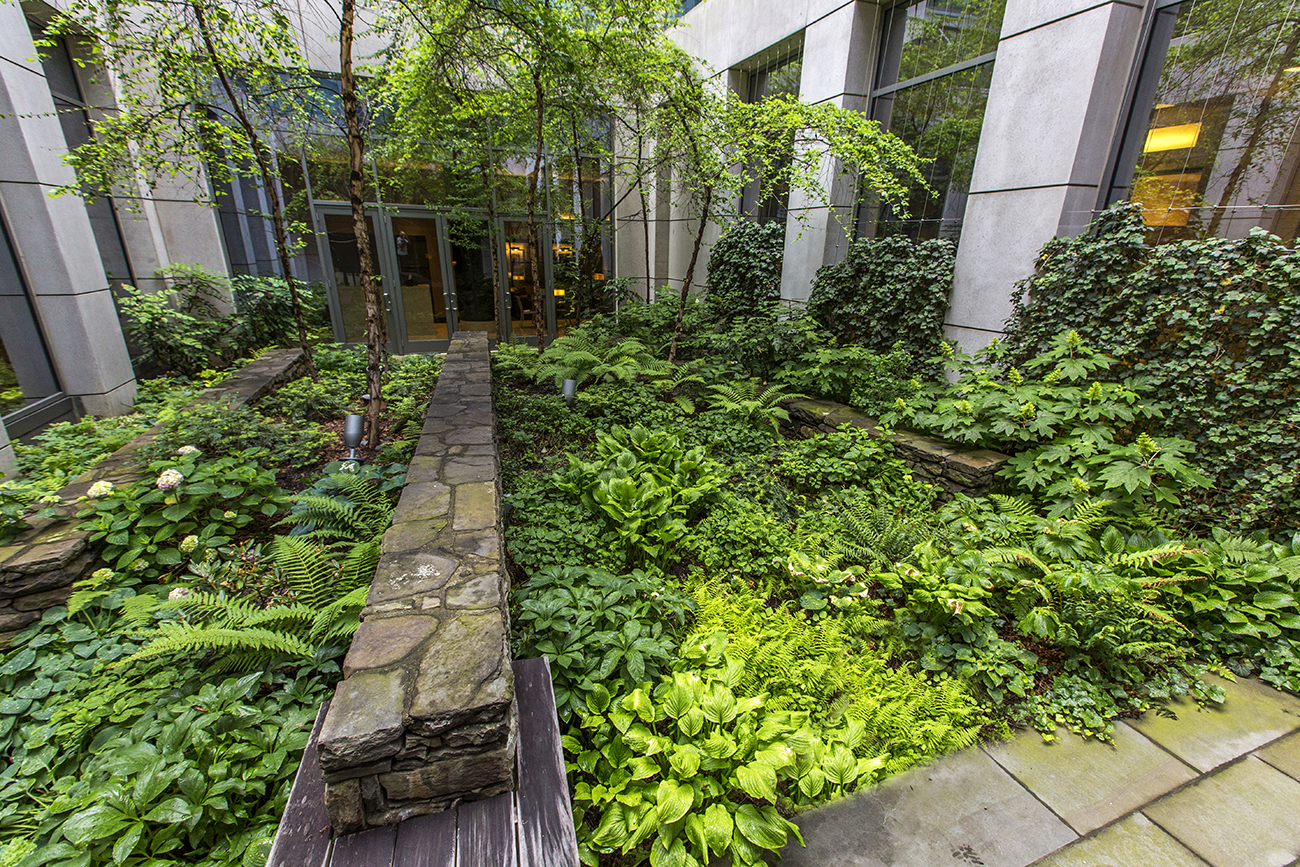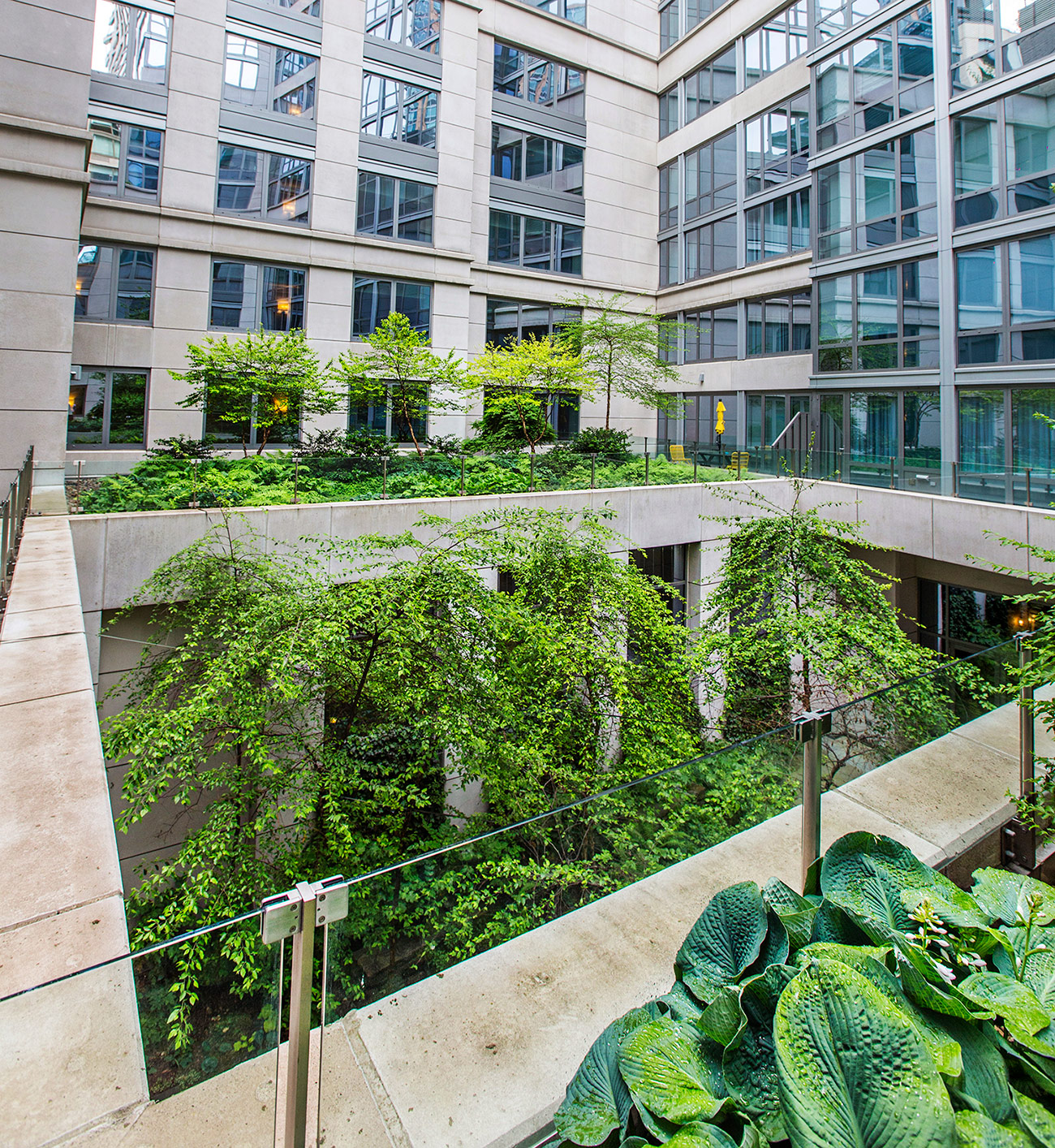 A woodland emerges in multiple levels of terraces and courtyards, inviting a pause and visit to this vibrant green sanctuary.