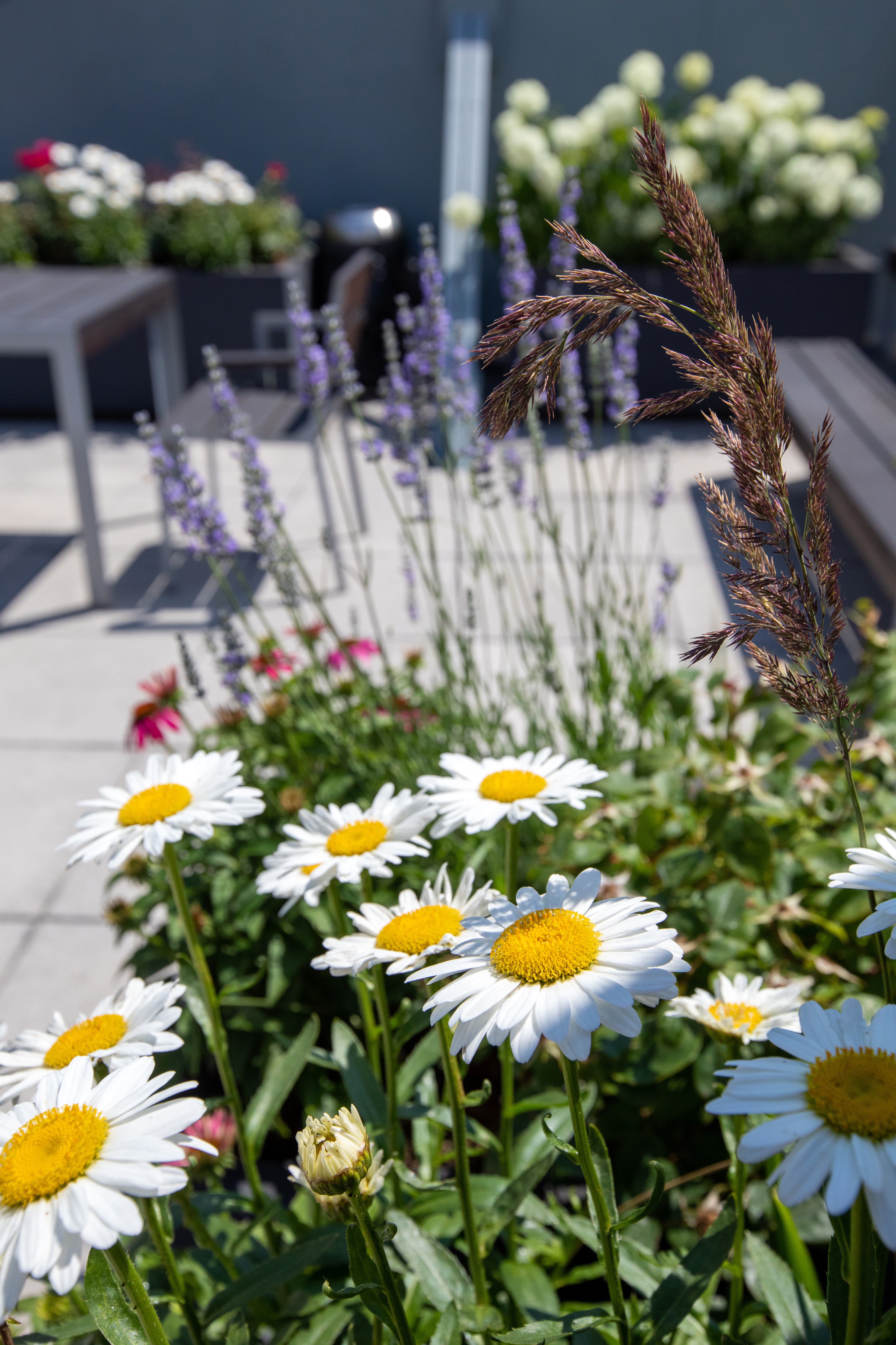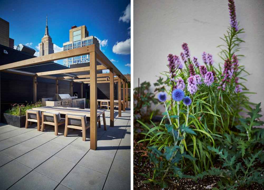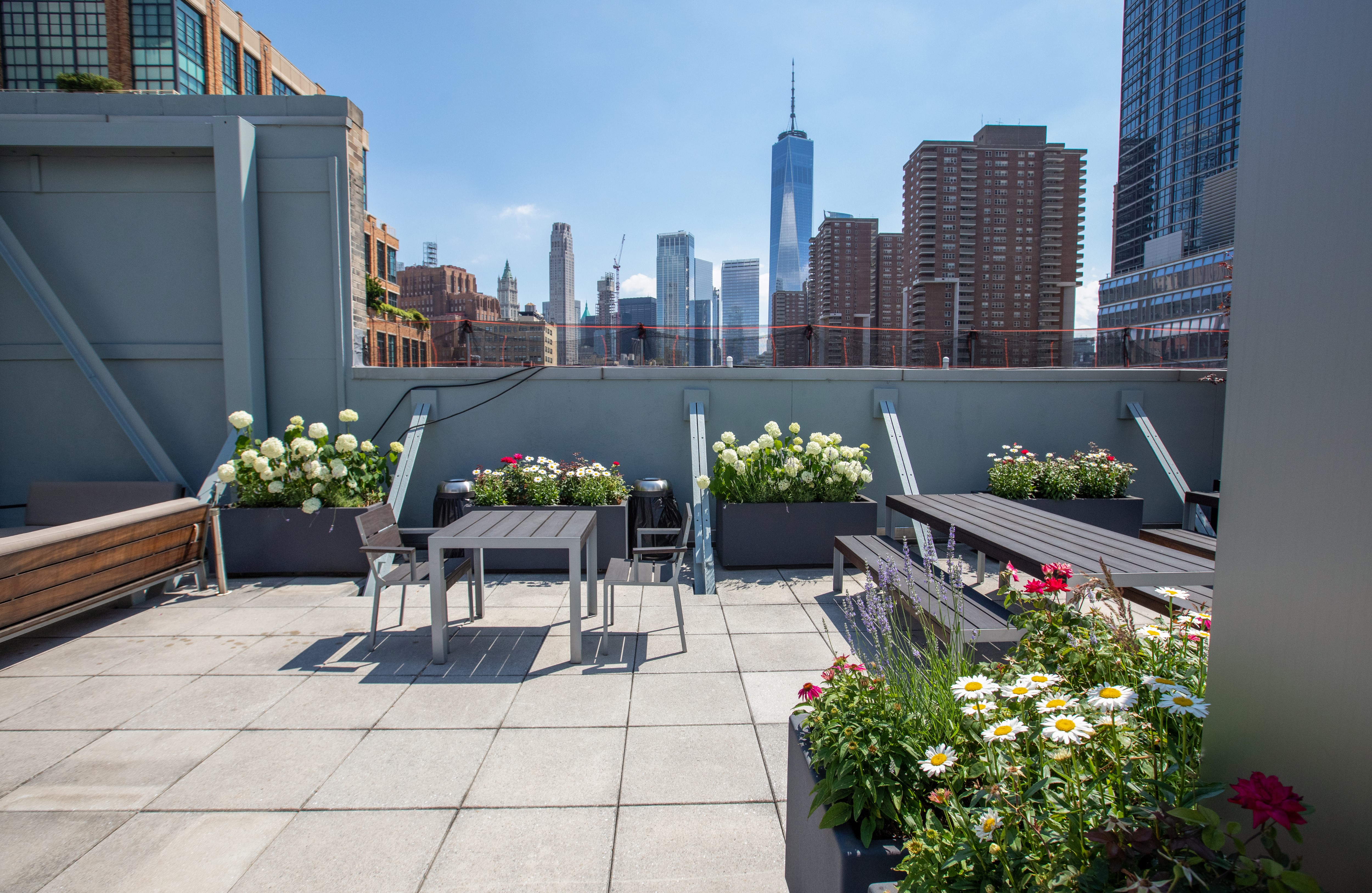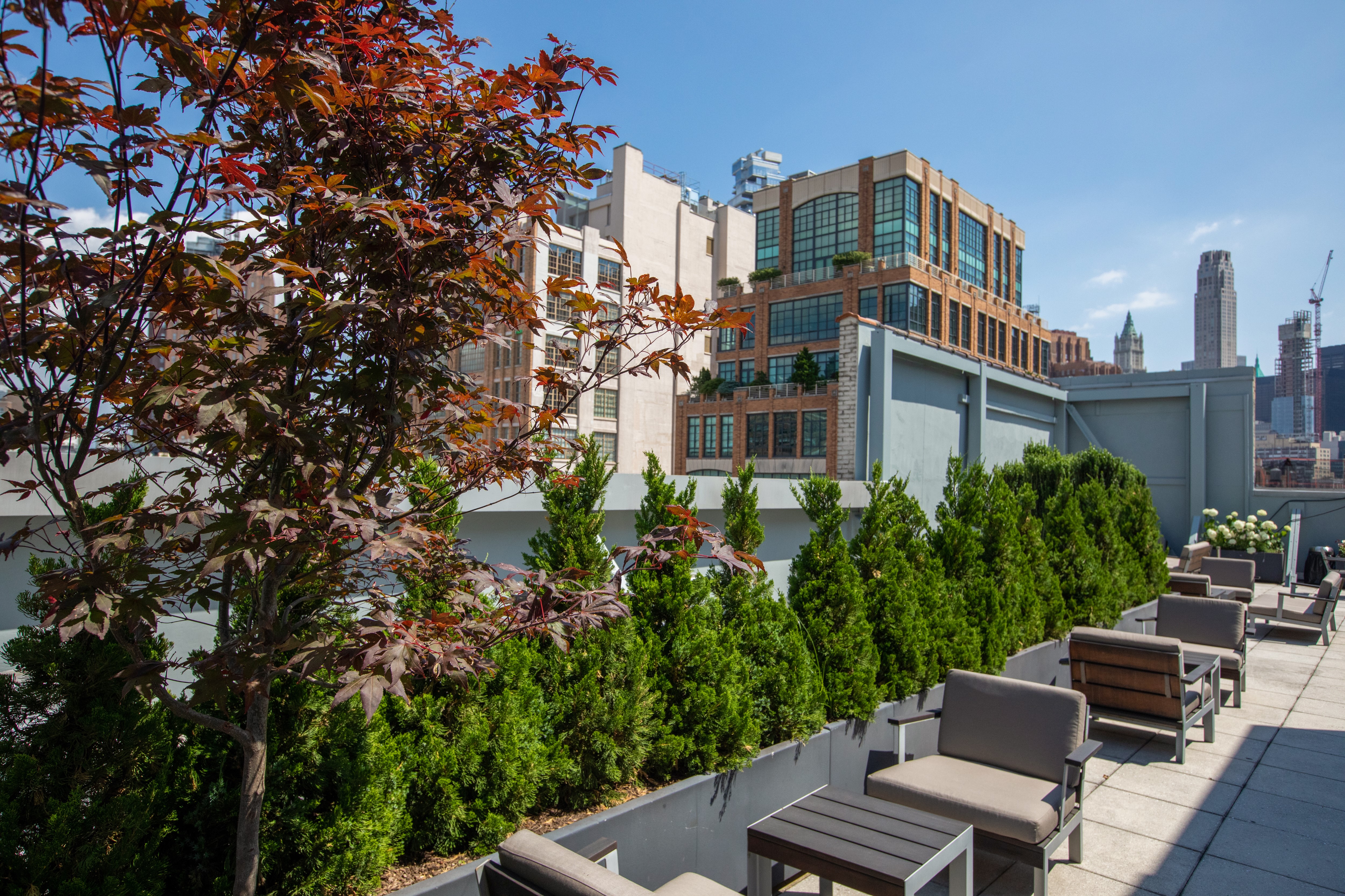 The rooftop becomes a canvas of tranquility, where a symphony of plants harmonizes with the bustling city below.