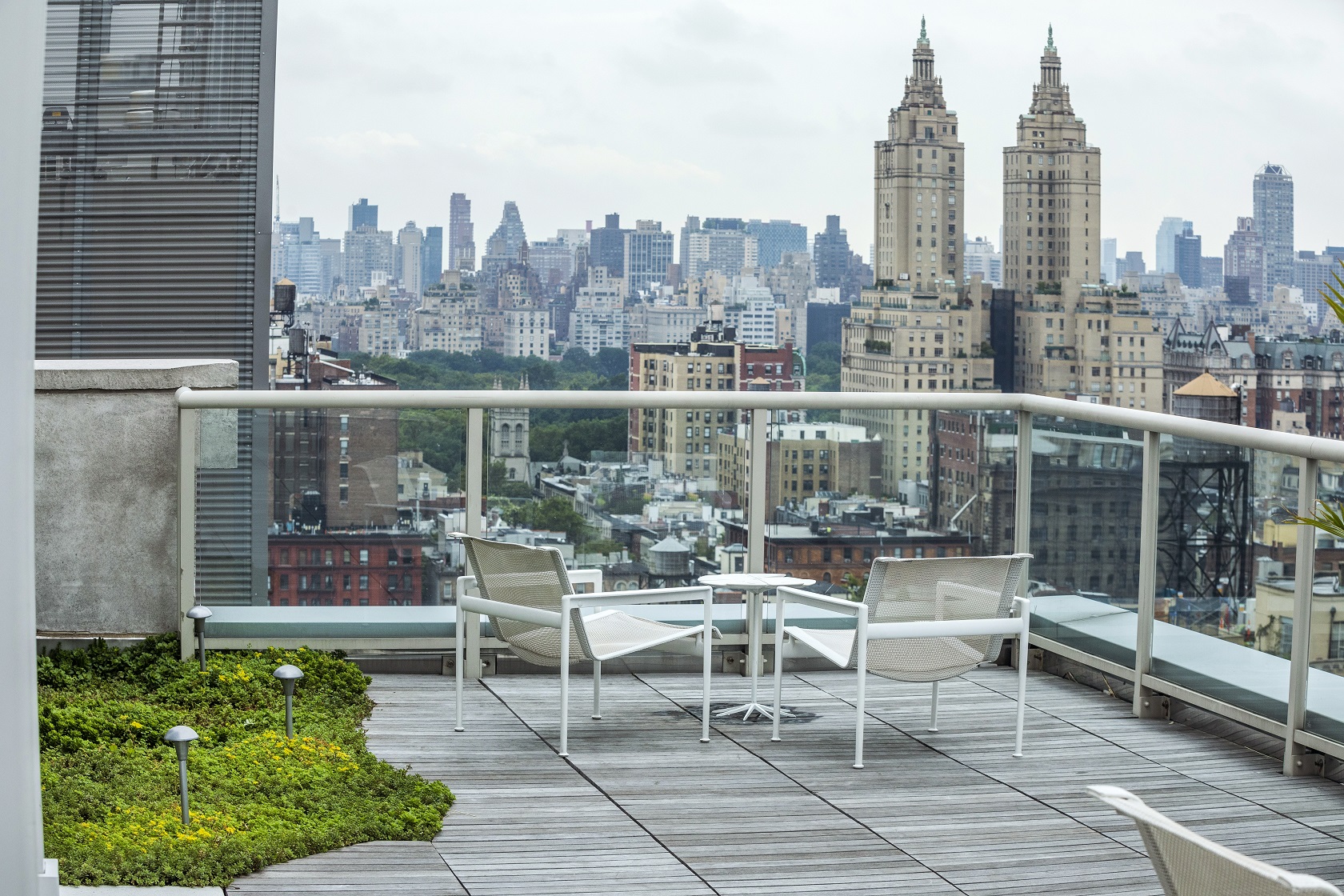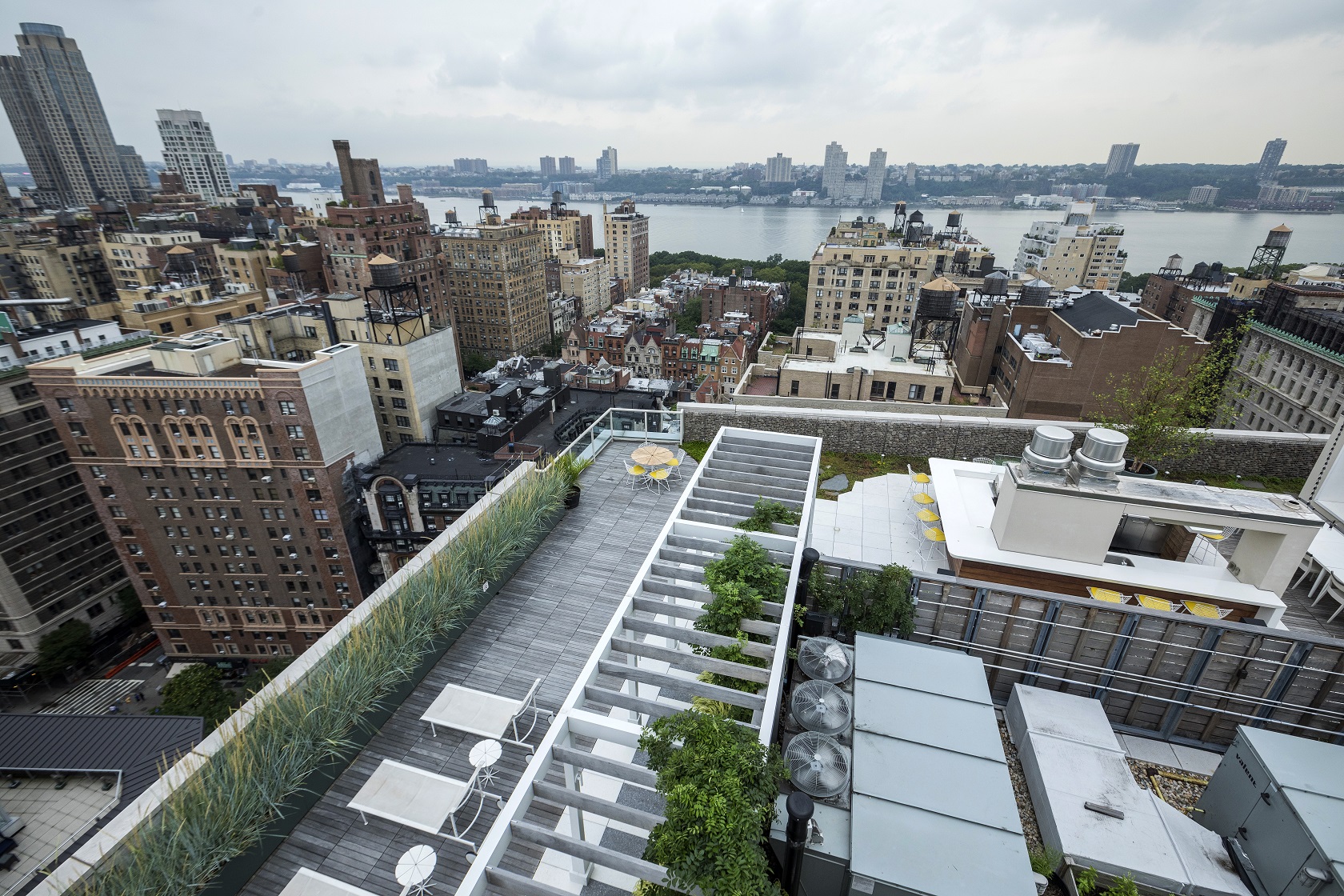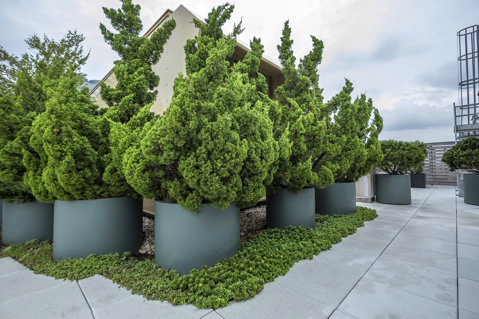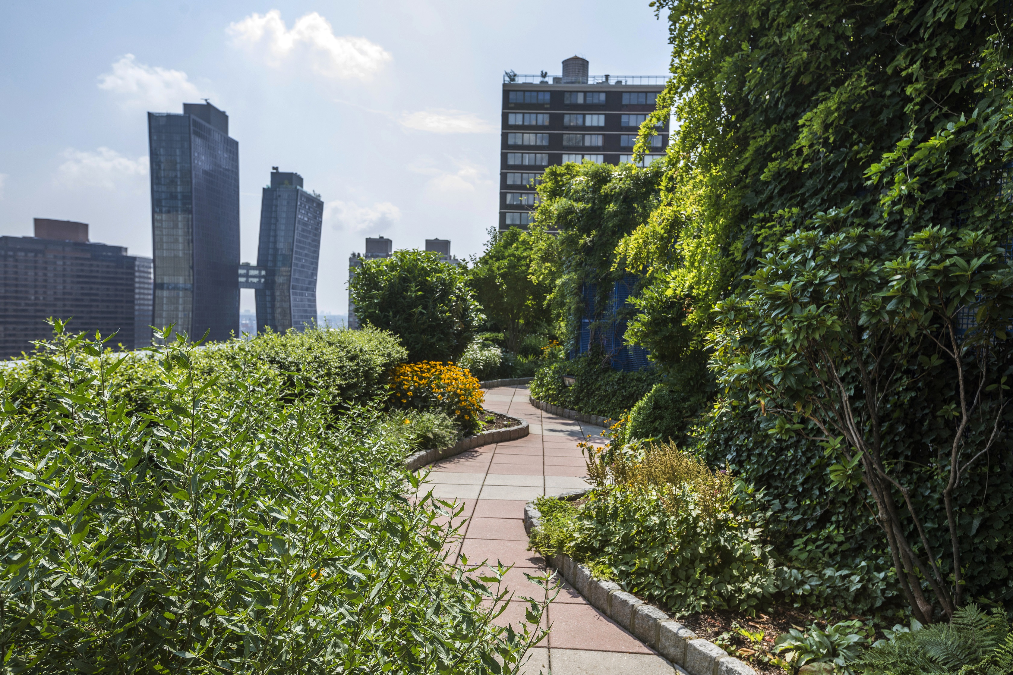 Expertly maintained specimen trees mix with perennials to encompass this sizeable outdoor rooftop, providing entertainment areas and cabana spaces which are enhanced with nature.