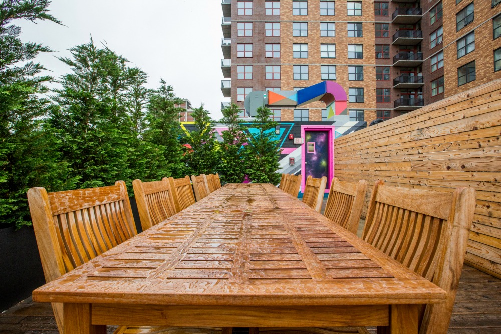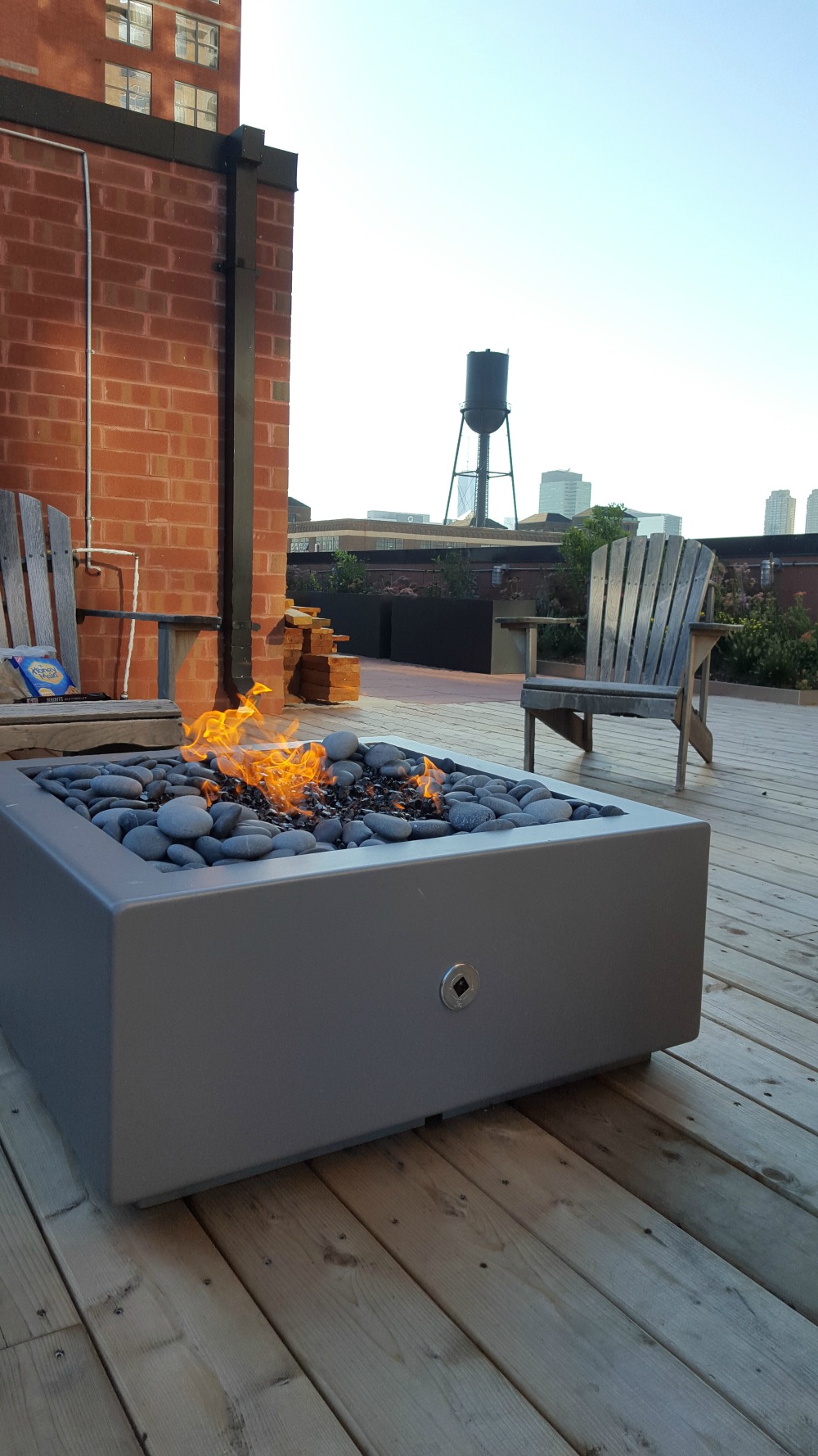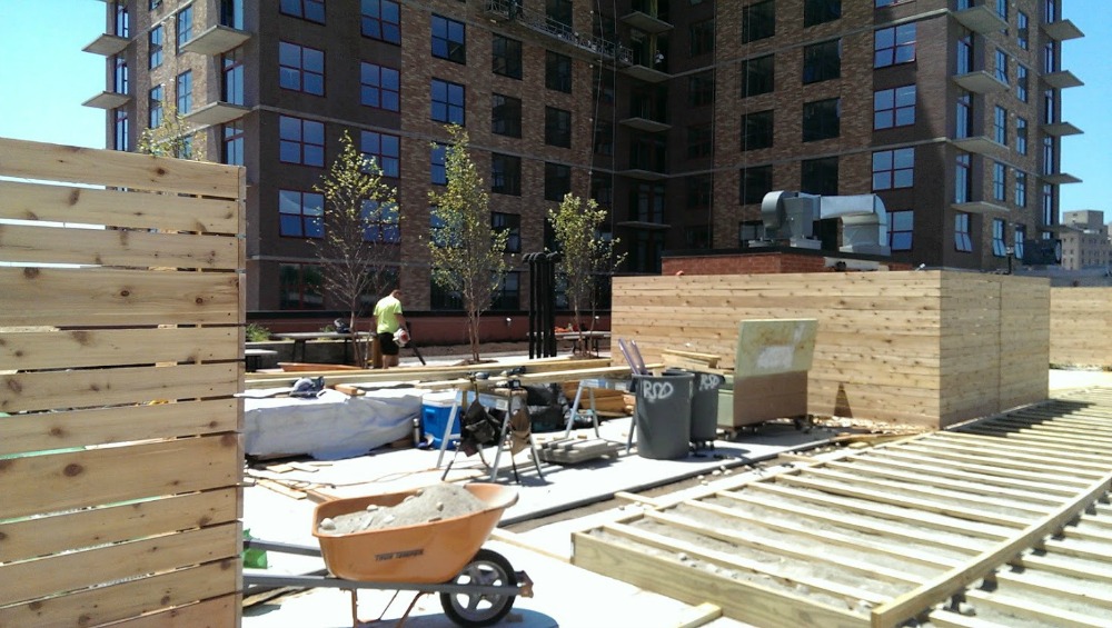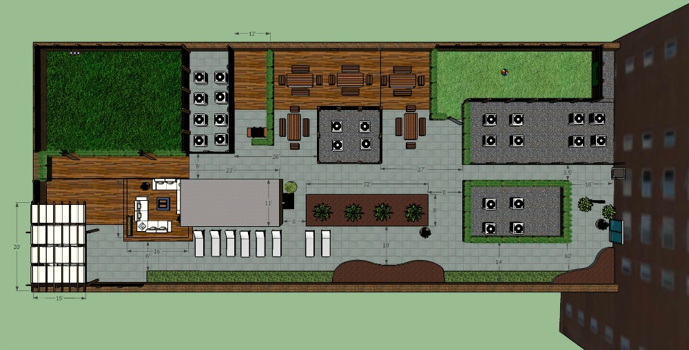 This rooftop garden redesign combines colorful perennials and plantings for privacy screenings, providing the residents with a dog run, fire pit, grilling stations, children's play area and a space for private parties.
