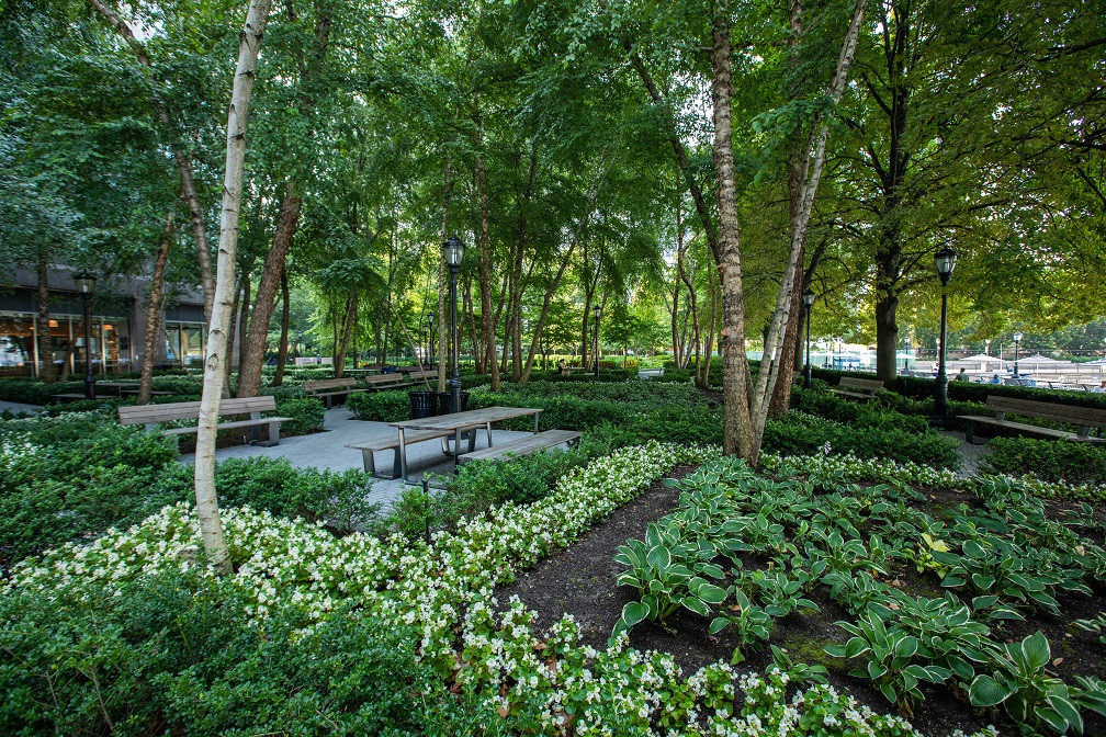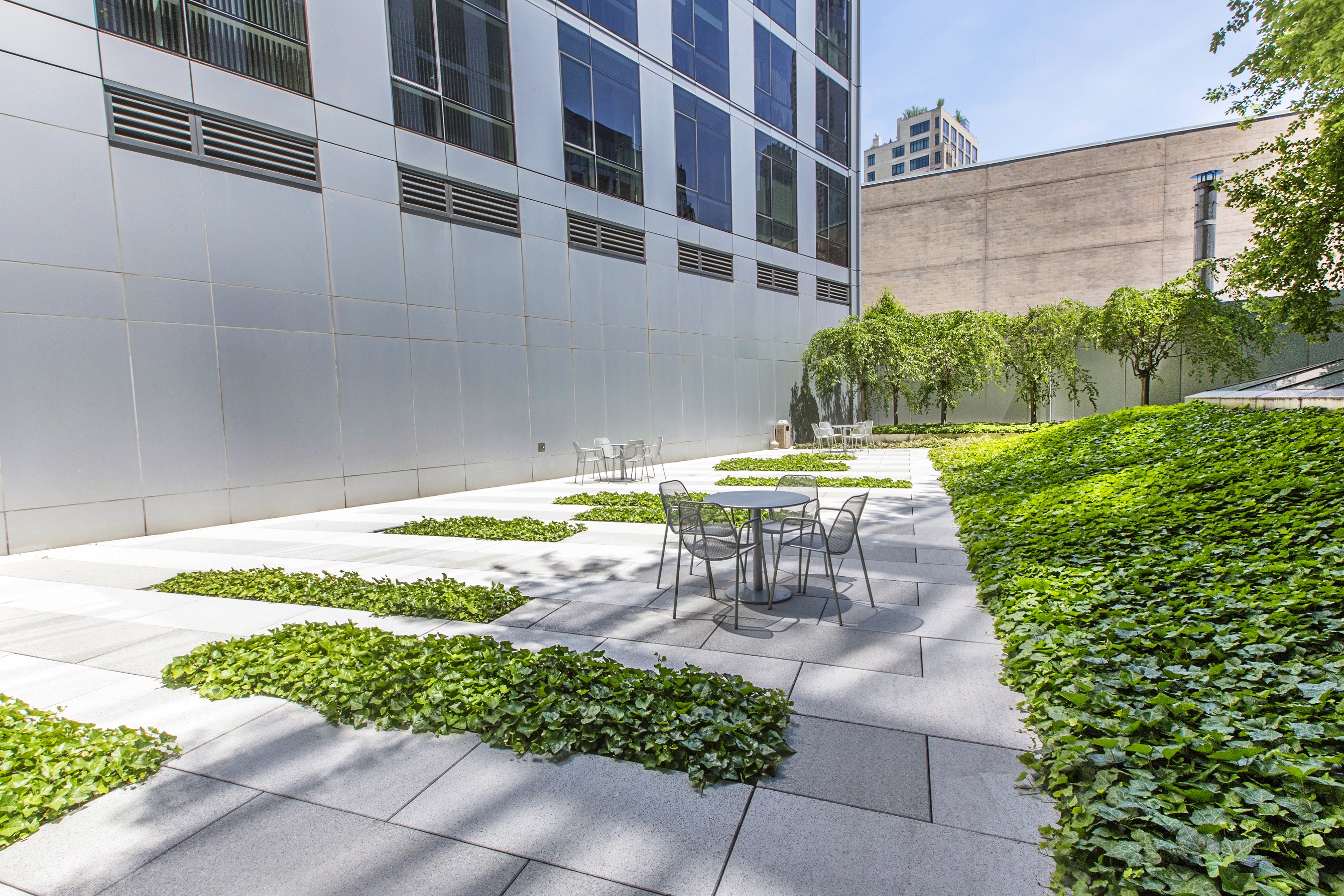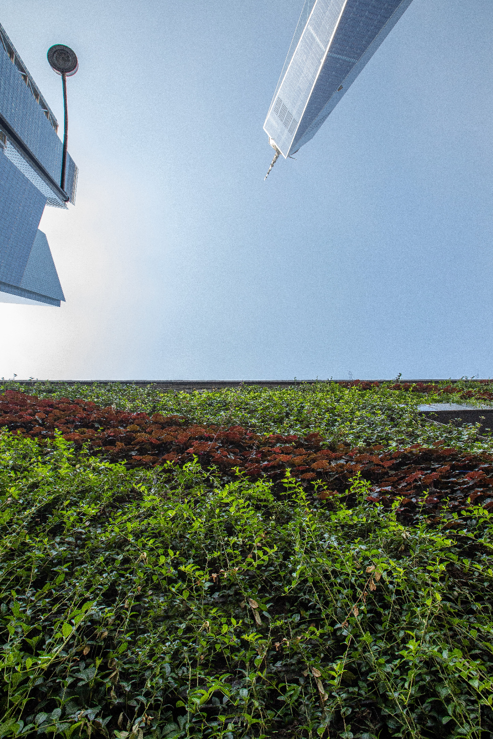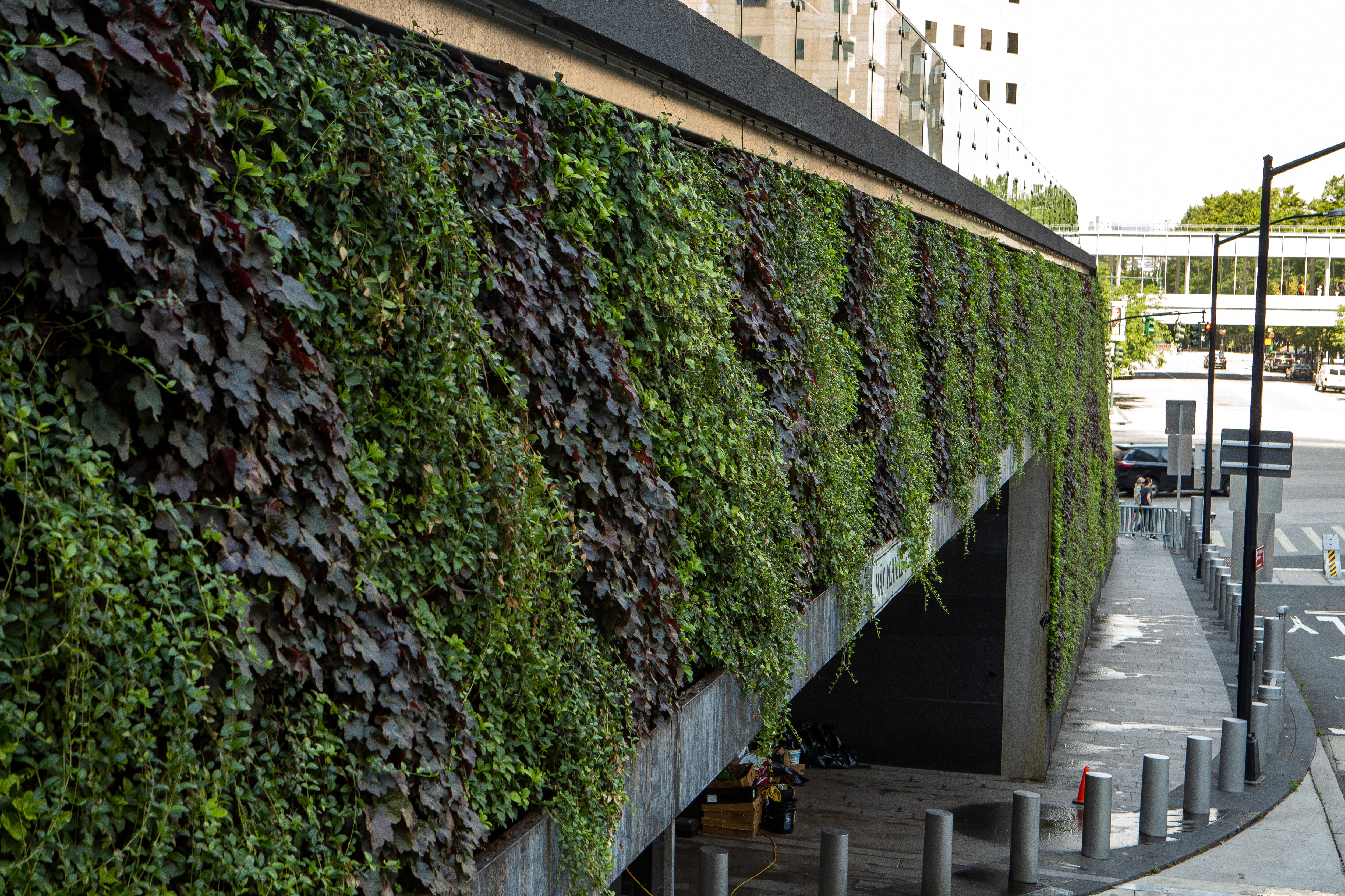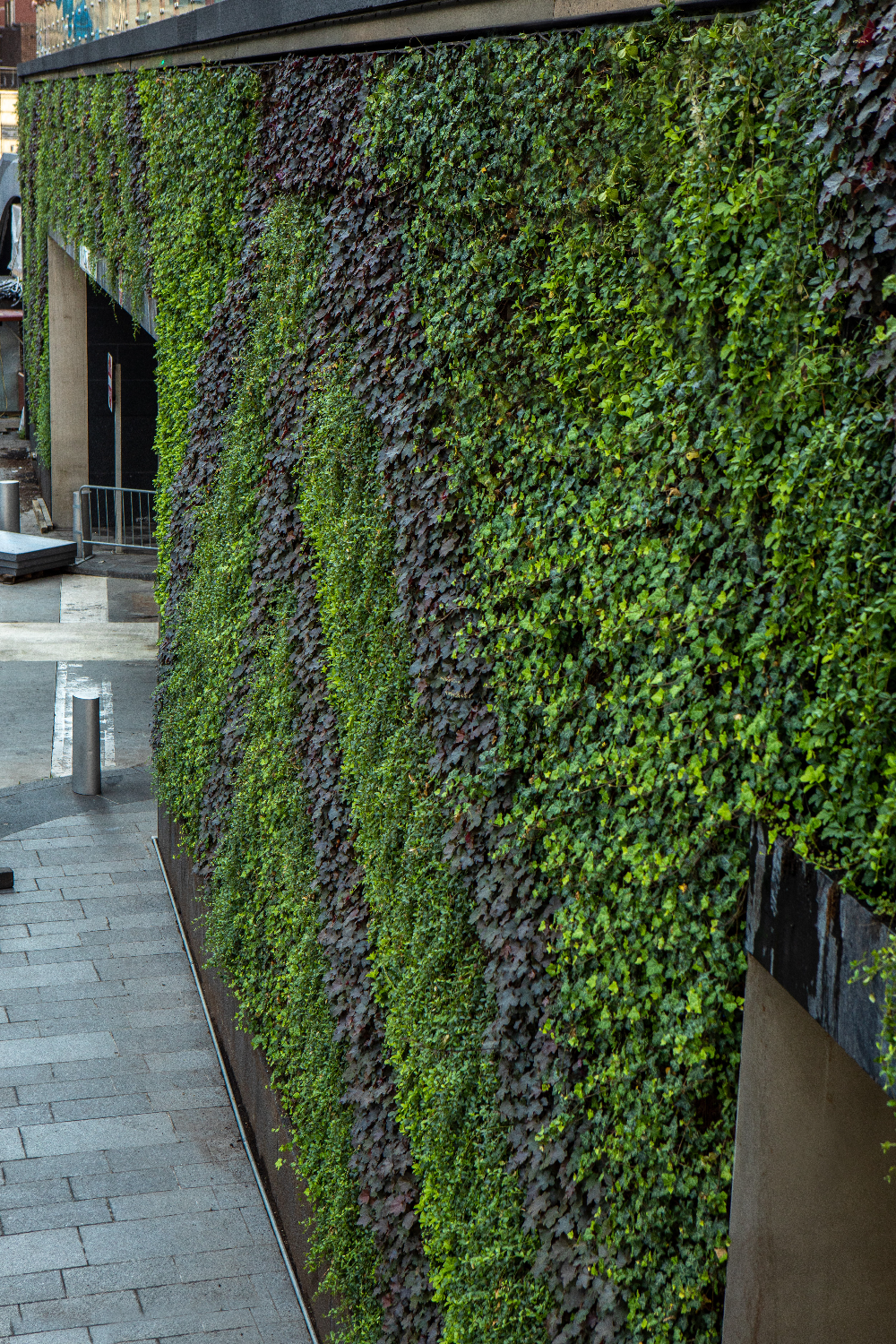 The lush foliage of the green wall intertwines with the architecture, infusing life and serenity into the heart of the city.